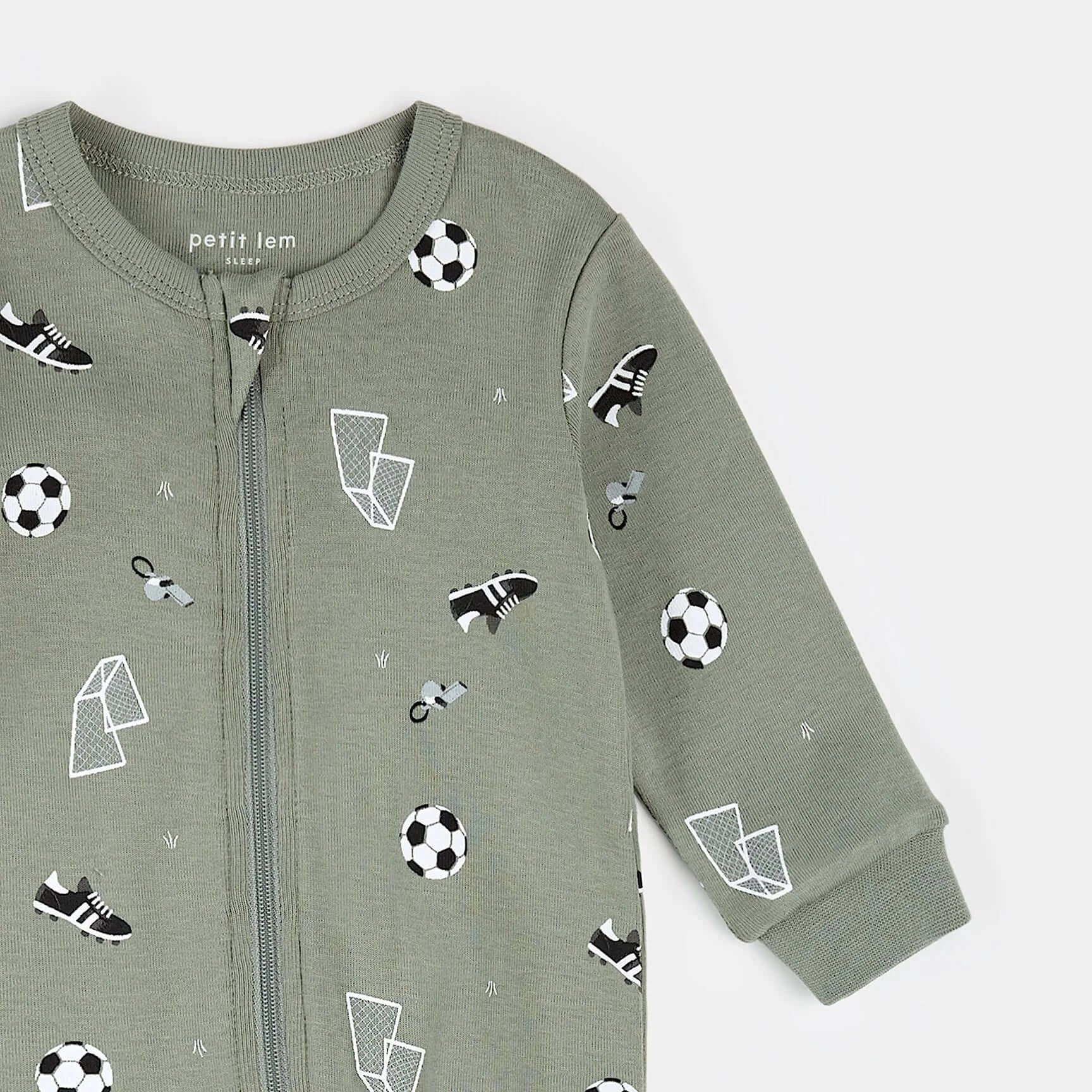Petit lem-Dormeuse vert olive à imprimé soccer 0 mois