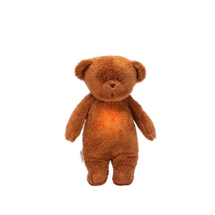 PELUCHE SONORE EN COTON BIOLOGIQUE AVEC VEILLEUSE 2.0 - OURSON CARAMEL - MOONIE
