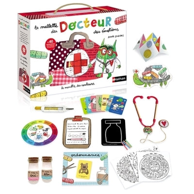 Le Monstre des couleurs est aussi un peu docteur. Il aide petits et grands à soigner leurs émotions, en particulier celles qui sont si grosses que l’on n’arrive plus à les avaler. Grâce à sa mallette, ce docteur va commencer par apprendre à l’enfant à reconnaitre ses émotions et à les nommer, puis, il lui apprendra à les apprivoiser pour se sentir mieux. C’est parti ! À vous de jouer ! Plusieurs activités sont proposées grâce au contenu très riche :