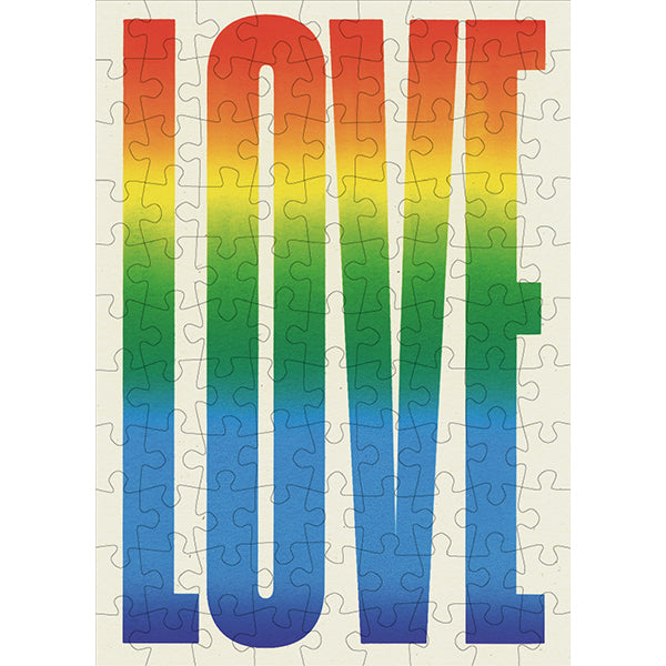 Mini puzzle de 99 pièces représentant une illustration dégradée du mot « Love » par Walker Carney.