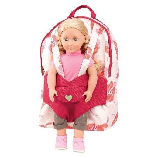 Your little lady will love the Our Generation Doll Carrier Backpack in the design Party. This adorable backpack will help your little lady transport around her favorite doll, books and stuffed animals. The durable polycarbonate fabric has a whimsical design. On the front of the backpack is a carrier that’s easy to slip her favorite doll in to securely. Perfect for 18 inch dolls.