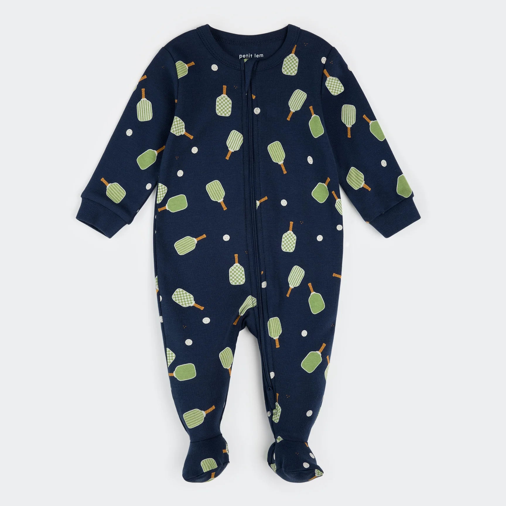 A real bedtime victory for your little pickleball fan! This navy blue sleep sack is made from soft and comfortable organic cotton, with built-in feet and ribbed cuffs to keep them snug all night long. Featuring a two-way zipper and a playful racket print, it's perfect for inspiring sweet dreams of summer activities.