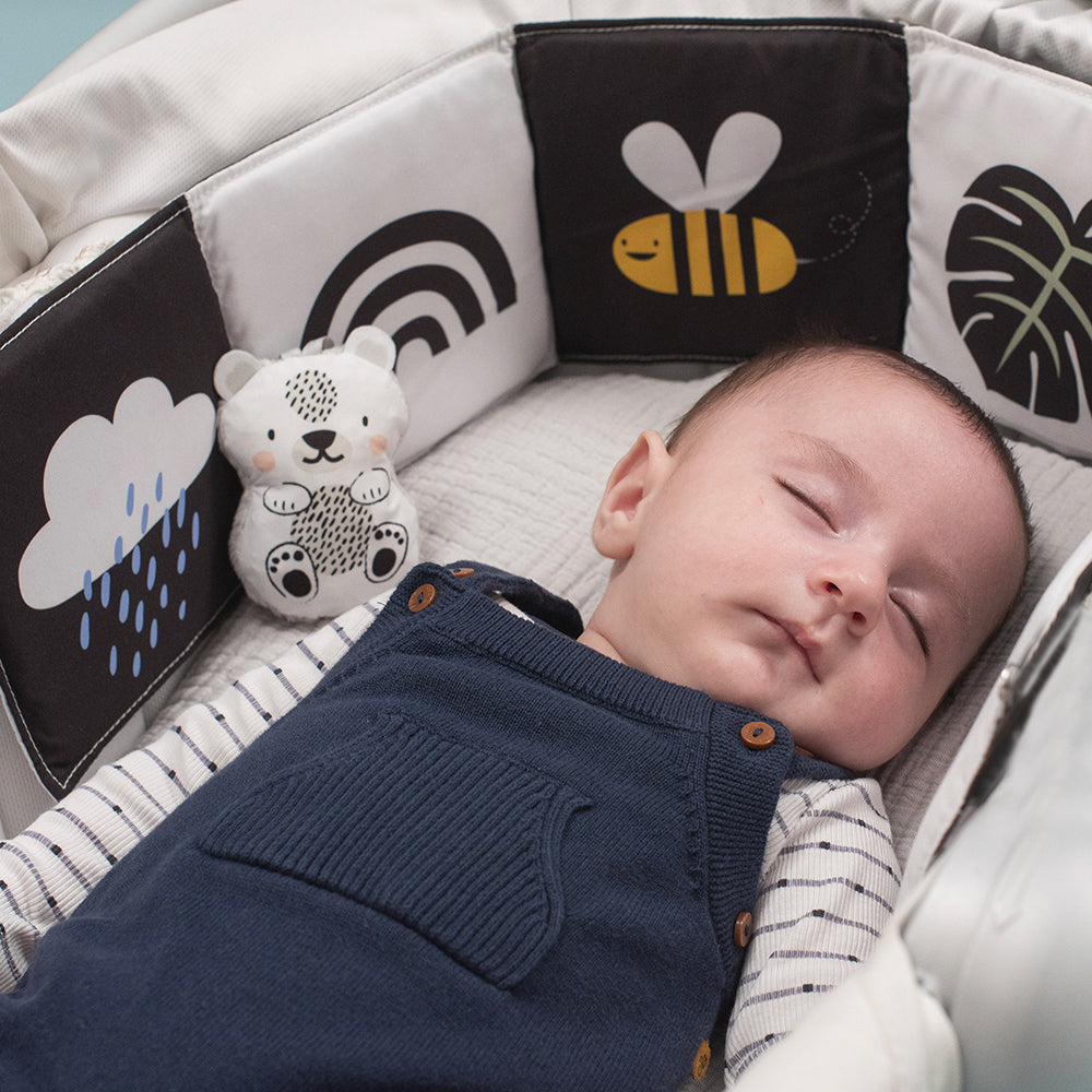 Designed for the early stages of life , this book offers optimal visual and sensory stimulation thanks to: