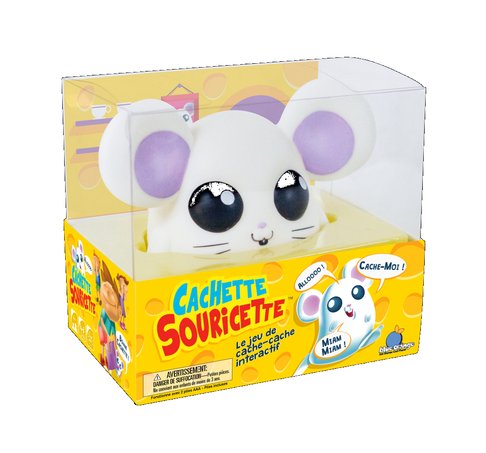 Can you find the mouse? One player hides it and the rest of the players have to find it! If you listen carefully, you can hear it laughing and laughing louder and louder! Once you find the little mouse, put it back in its cheese box so it can finish its meal!