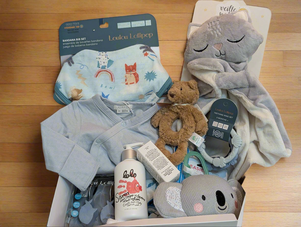 Discover our birth gift set, carefully selected to meet all budgets and needs. Toys and early learning books, muslin cloths, care products from the Quebec brand LOLO, soft pajamas, adorable soft toys from Jellycat or Bukowski and much more! 🌟