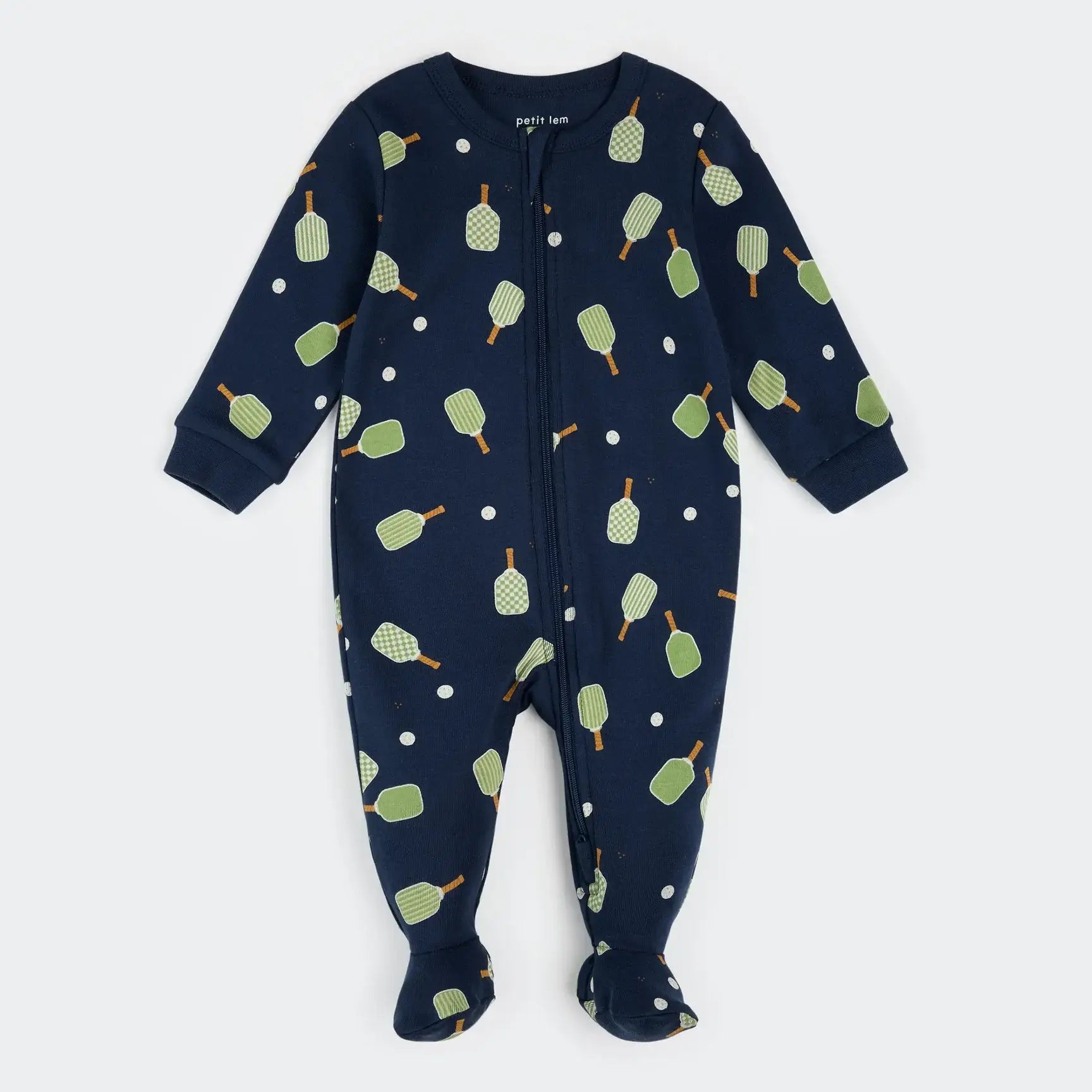 Little navy blue Lem-Sleeper with pickleball print, 3 months