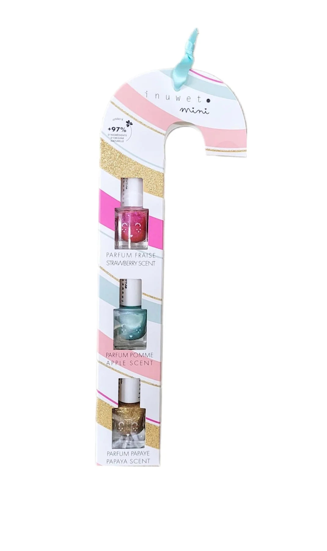 Canne de Noël 3 vernis à ongles - Fuchsia, turquoise et or - Inuwet