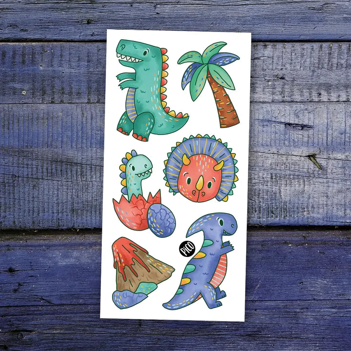 Le tyrannosaure et ses amis les dinosaures sont toujours en groupe d'amis prêt du volcan. Ils se prélassent au soleil et adorent la chaleur et les palmiers.