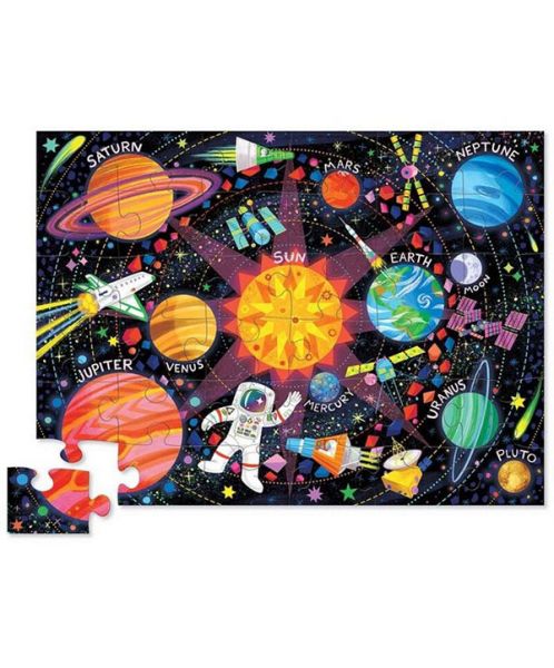 Il s'agit d'un puzzle spatial vraiment cool avec des planètes aux couleurs vives et un astronaute flottant. Il s'agit d'un grand puzzle livré dans une boîte de forme unique.